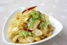 主料:洋白菜半颗。调料:食盐1/2茶匙,醋1汤匙,鸡精1/2茶匙,蒜5瓣,干辣椒5个,生抽1汤匙,白糖1茶匙,芝麻油1/3汤匙,植物油1汤匙,白芝麻1把。
