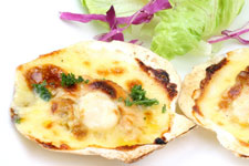 3、烤箱预热180度,将制作好的马郁兰奶酪涂抹于扇贝上,再洒上剩余的奶酪粉,放进烤箱,烤制10分钟左右即可。