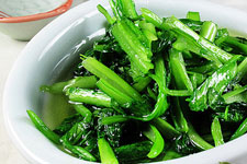 主料:小白菜300克。调料:食盐1茶匙,花椒8粒,植物油1.5汤匙。