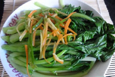广东菜心,又称菜薹,属于低草酸高钙食物,很适合骨质疏松者,其中还含有有机碱,除了预防骨质疏松外,还能增进食欲,加强肠胃蠕动,是非常健康的一道菜。但是广东菜心在北京、上海、杭州、成都等地少有种植,并不常见。