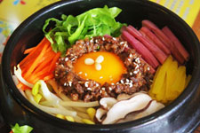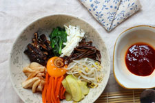 辅料:甜辣椒酱,香油,芝麻,烤肉酱,黄豆芽,菠菜,胡萝卜,木耳,桔梗,角瓜,生菜,肉末,蕨菜。