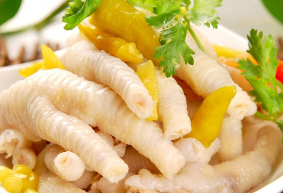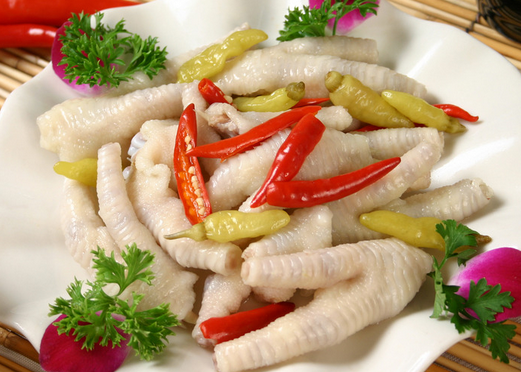 泡椒凤爪是起源于重庆的独特汉族特色小吃,属渝菜小吃类。以酸辣爽口、皮韧肉香而著称。泡椒凤爪既能登大雅之堂,也为普通老百姓所喜爱。此款美食具有开胃生津、促进血液循环的功效。制作过程比较讲究,这样才能使泡椒的劲辣味道沁入凤爪中。正宗的泡椒凤爪丰满洁白,咀嚼时骨肉生香,具有很强的催味功效。