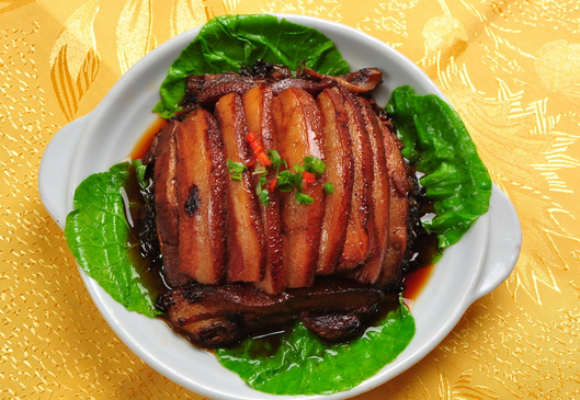 蒸肉是一道色香味俱全的汉族传统名菜,属于湘菜系或川菜系。蒸肉,顾名思义,就是用蒸的方法做成的肉食。将肥瘦相间的猪肉,用盐、料酒、糖、味精等调味料煨好后,放入锅中蒸熟即可。本菜肉质松软,肉香扑鼻,营养丰富,可以拌米饭,也可以夹在面食中食用。