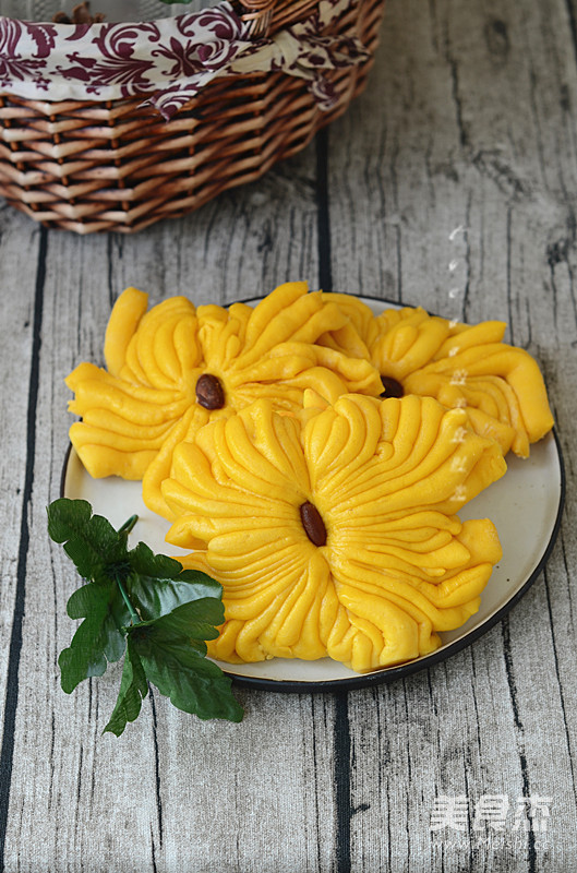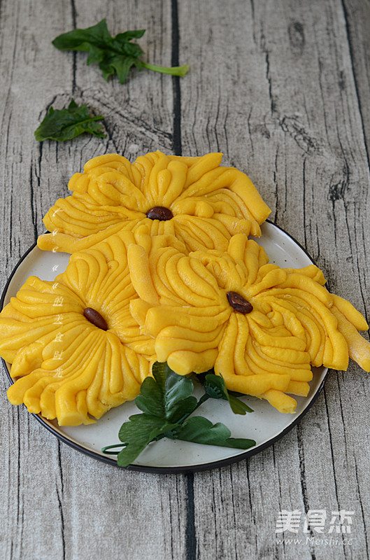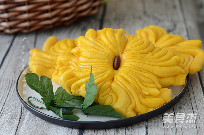 南瓜内含有维生素和果胶,果胶有很好的吸附性,能粘结和消除体内细菌毒素和其他有害物质,如重金属中的铅、汞和放射性元素,在这雾霾笼罩的冬季食用,能起到一定的解毒作用。加了南瓜泥的馒头,颜色非常漂亮,这种来自自然的颜色是任何色素添加都无法比拟的。金灿灿的菊花,是不是让你想到的秋高气爽的蓝天了呢!