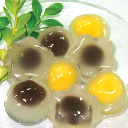 锅中放入材料A,加热拌煮至沸腾后转中小火,继续拌煮至洋菜粉完成溶化后,再加入材料B继续搅拌煮匀后备用。
