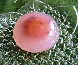 PS:还有一种方法,就是把皮先铺在沾水的保鲜膜里,然后放豆沙馅再包起来等放凉。保鲜膜法包出来的水馒头更圆一些。用马铃薯淀粉或者玉米淀粉做出来的水馒头透明度更高一些。