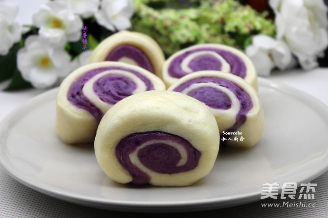 紫薯富含蛋白质、淀粉、果胶、纤维素、氨基酸、维生素及多种矿物质,同时还富含硒元素和花青素。紫薯和面粉一起做馒头不但好吃还还好。今天就来做一个紫薯馒头吧。