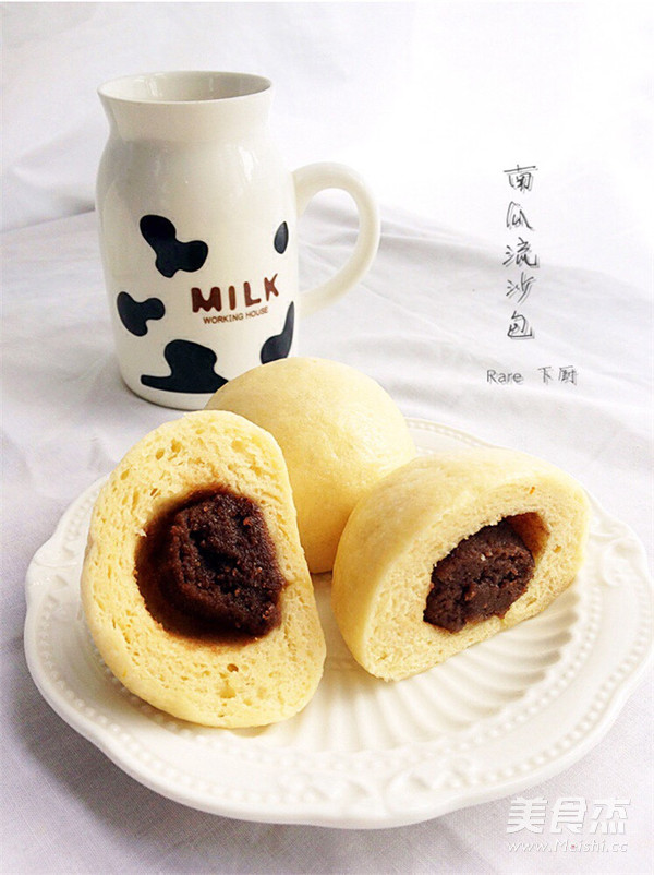 赶紧的,还有不多的南瓜泥和了面团,包上馅儿,蒸出来,这么多材料取名倒也难为自己了,群策群力,妈妈朋友们出主意,最后选了“南瓜流沙包”的名字,只为巧克力与豆渣的奇妙相遇……