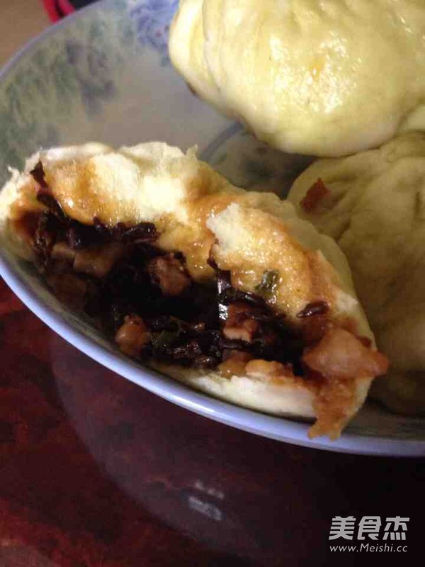 美味来袭! 主料 自发粉500克 猪肉(肥瘦)300克 辅料 茴香100克 菠菜汁适量 盐1茶匙 生抽1汤匙 老抽半汤匙 猪肉冻适量 糖适量 梅干菜适量 茴香肉包的做法 1.揉面至不沾手后放至醒面完成 2.猪肉剁碎后,加入涝水后的茴香、盐、酱油、猪肉冻调味 3.做好包子后,放至20分钟后再放入锅中蒸 4.水沸腾后放入包子,约15分钟后,关火再闷三分钟 烹饪技巧 菠菜汁只是我为了调色,可以不加。蒸包子的时间视包子大小而定。如果面粉是前晚发的,第二天早上需加面粉再发半个小时后做包子