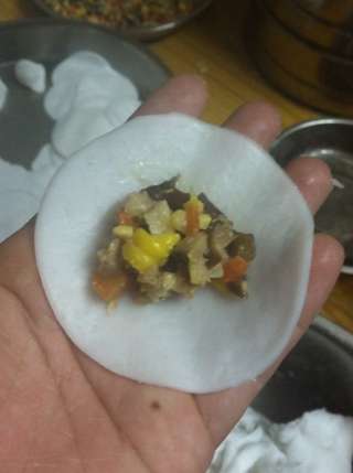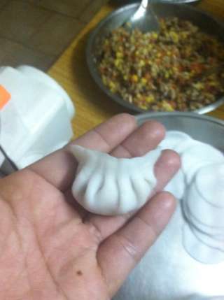 主料: 猪上肉 (750克) 冬菇干 (80克) 木耳干 (20克) 红萝卜 (1个) 虰米 (150克) 马蹄 (8个) 小麦淀粉 (1000克) 生粉 (350克) 甜玉米 (1个) 木耳干 (20克)水晶饺的做法: