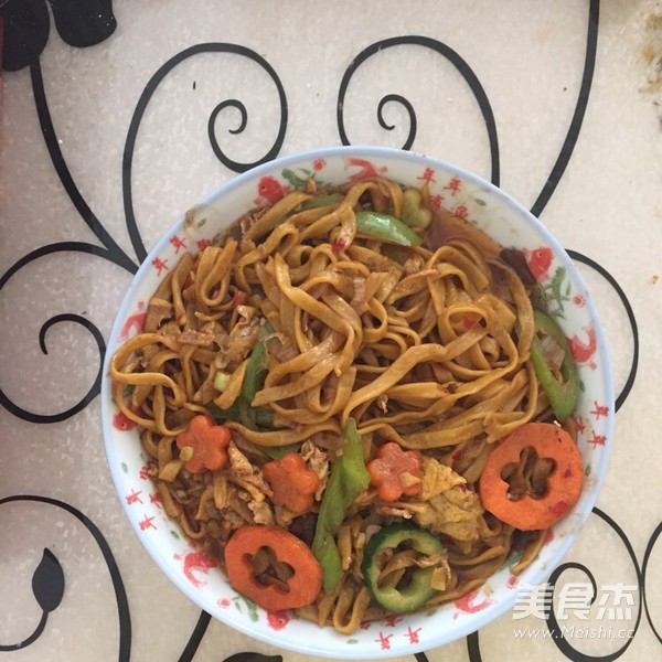 孩子爱吃 就弄点吧 方便快捷 青菜豆芽洋葱都可以放 主料 面条(生)200克 鸡蛋2个 辅料 植物油1勺 食盐1小勺 小葱10克 生抽10毫升 黄瓜1根 胡萝卜1根 鸡蛋炒面的做法 1.这是自己做的面条 如果不会做直接买现成的 或是用挂面也行 2.水烧开 大火 把面下里 用筷子搅拌 防止粘连 煮3分钟小火温2分钟 捞出过凉水 备用 3.切葱花 辣椒 胡萝卜 把鸡蛋打散 备用 4.把有烧热 下鸡蛋青菜 面条 放酱油一汤匙 陈醋半汤匙 盐适量 洒点孜然 就可以出锅了 烹饪技巧 陈醋和盐根自己口味多少调节 喜欢辣的可以放点郫县豆瓣酱 或是辣椒油