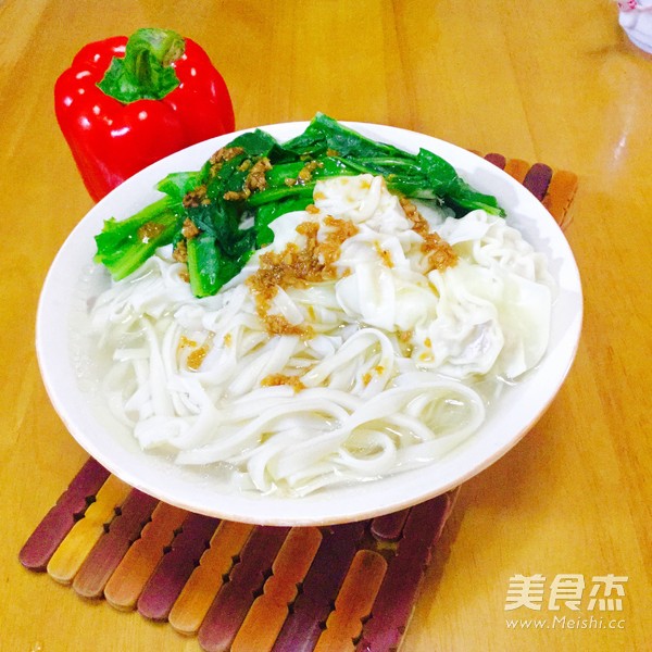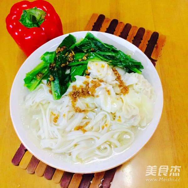 十分喜欢的早餐之一 主料 面条(生)250克 云吞200克 油菜200克 辅料 油20克 盐10克 酱油10克 油菜云吞面的做法 1.准备好材料 2.洗净油菜 3.切段 4.烧开水,加入油盐后加入云吞煮熟 5.盛出 6.锅里放入油菜,焯至断生 7.盛出 8.加入面条煮至熟透 9.捞起,用水冲洗去胶质,沥干 10.锅里加入清水,加入油盐,待水烧开后,加入面条煮滚 11.捞起面条,摆上云吞和油菜 12.注入清汤 13.淋上酱油 烹饪技巧 煮面时,水要加入油盐,这样面条就不会粘连
