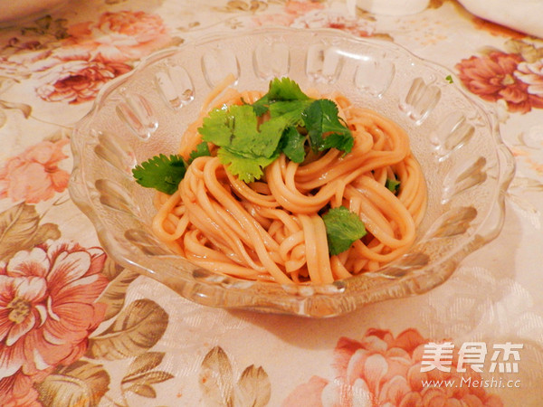 6.将面条全部裹上面酱之后,加点盐稍微调味