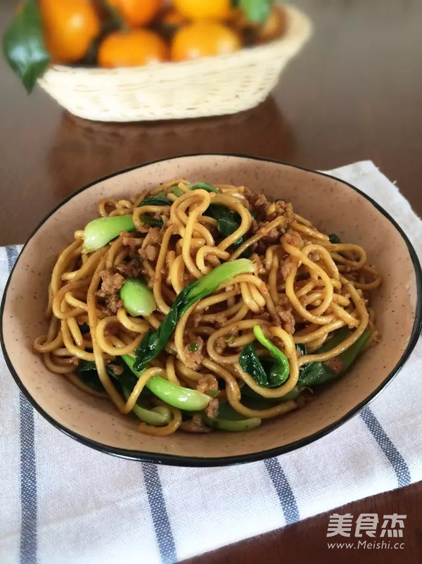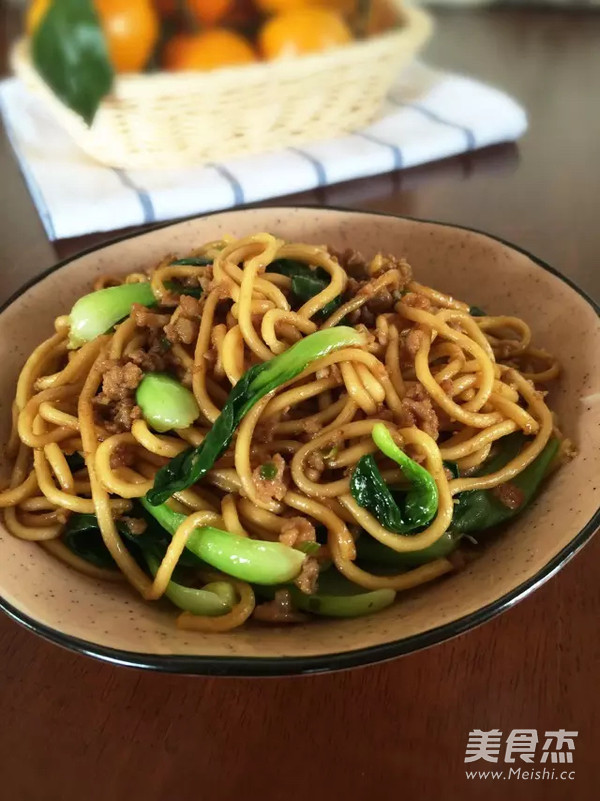 青菜肉沫炒面的做法