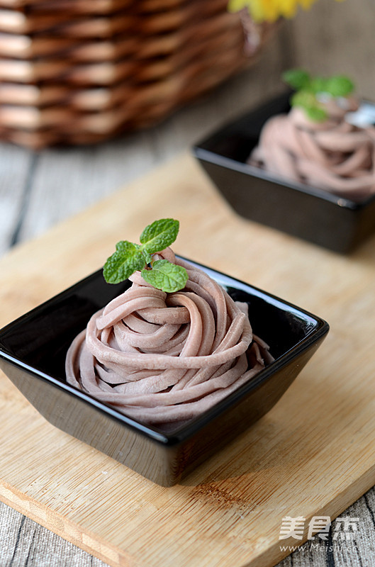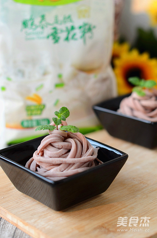 因为紫薯的含水量不同,所以和面的时候请酌情添加蛋液和水分。 配料中的盐可以使面条口感更劲道。
