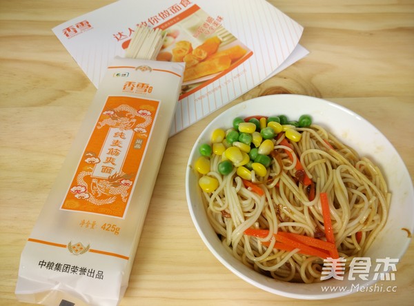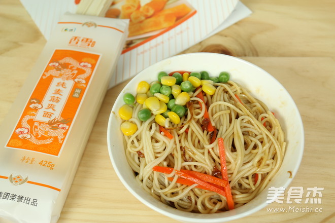 玉米豌豆葱香拌面,早餐宵夜都是不错的选择。