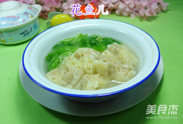 我和儿子的简单早餐~~~~~~~~~~~~浓汤宝小馄饨波纹面,里面的圆白菜(包菜)是起到辅助和增色的作用。 主料 馄饨120克 方便面饼105克 辅料 圆白菜60克 浓汤宝32克 浓汤宝小馄饨波纹面的做法 1.食材:鲜虾小馄饨、波纹面、圆白菜(已清洗)、浓汤宝 2.将浓汤宝搁入清水锅中煮开 3.下入波纹面和已清洗好的圆白菜翻动一下煮开、煮上4分钟 4.然后,合入鲜虾小馄饨翻动一下煮开,煮上1分钟,即成 5.盛出装入大碗中,就可以吃吃喽