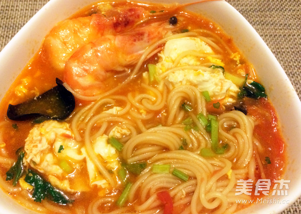 西红柿大虾混汤面的做法