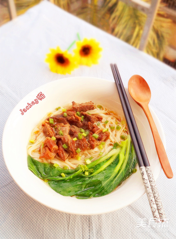 去年的时候猫跟家人去了一趟香港,在茶餐厅里吃了一份牛腩面,面条的口感筋道爽滑,据老板说是只用鸡蛋来和面,然后用根大竹竿去压面,那跟我们佛山的竹升面如出一辙呀,不过味道真心好吃,特别是上面的牛腩,卤的软烂够味,大大块的牛腩肉在口腔里不单只是汁水饱满,还软嫩弹牙,感觉好象很久没吃到这么好吃的牛腩面了,这美妙的味道总是让人难以忘却的