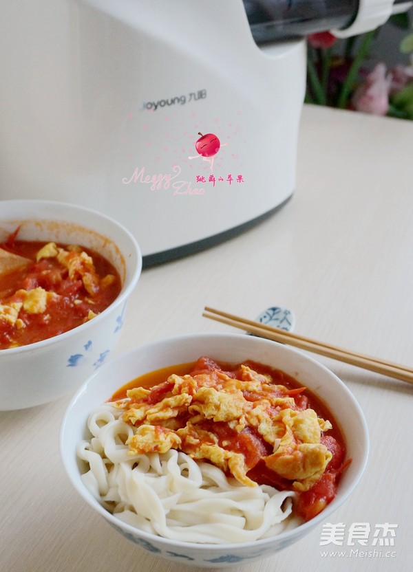 没有面条机用手擀面或者外卖的挂面也可以哟!鸡蛋炒完先盛出,待西红柿炒熟后再重新入锅,漂亮又鲜嫩