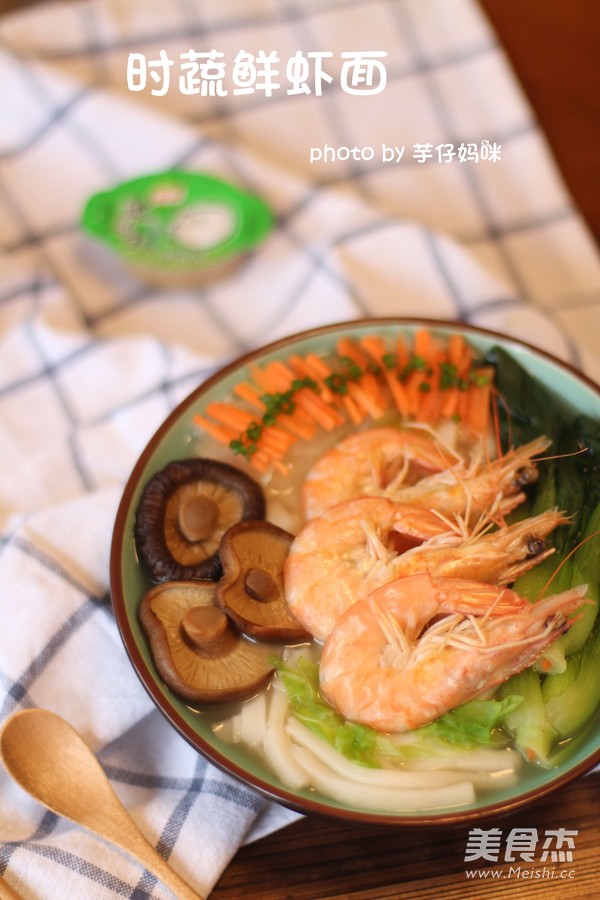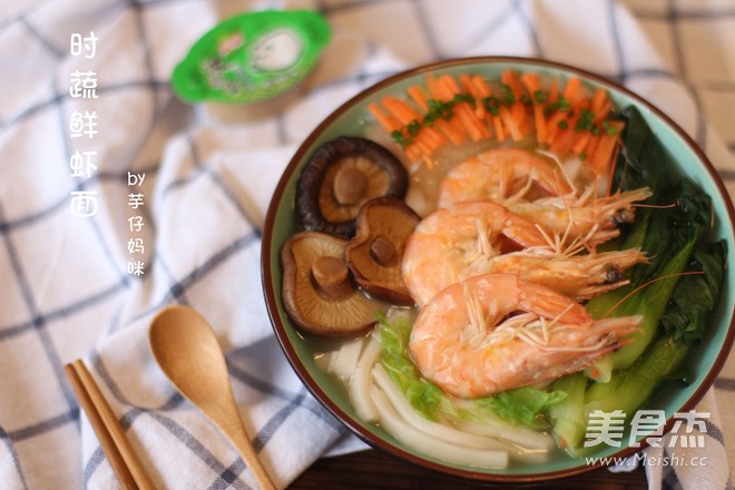 浓汤宝时蔬鲜虾面的做法