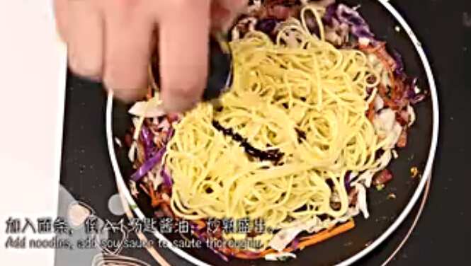 蔬菜培根面的材料:培根10克,黄瓜30克,包菜30克,紫甘蓝5克,豆芽5克,面条50g,生抽5ml 盐2克,蚝油2g 蔬菜培根面的做法: 1.准备好煮熟的面条,将黄瓜,培根,豆芽,包菜,紫甘蓝洗净切好备用 2 热锅热油炒香培根 3 放入包菜和紫甘蓝翻炒 4 再放入黄瓜和豆芽,盐翻炒 5 放入熟面条翻炒 6 加入生抽,蚝油拌匀即可