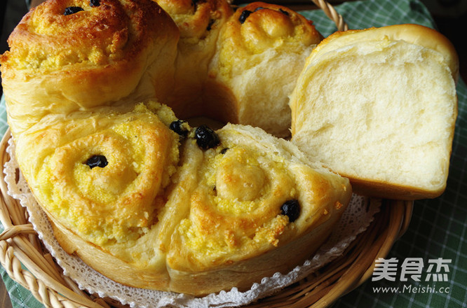 我喜欢用中空的模具做面包,这样烘烤起来会特别均匀,而且上色也很美。例如这个椰蓉面包卷,我觉得好美丽,金黄的椰蓉甜甜的,香味浓郁又不觉得甜腻。里面的果干我加的是蓝莓干,因为椰蓉比较甜蓝莓干偏酸,当然也可以换成葡萄干、黑加仑干或蔓越莓干。这款椰蓉面包卷是用的直接法,过程算是很简单的,而且整形也还可以,新手完全可以驾驭呀!