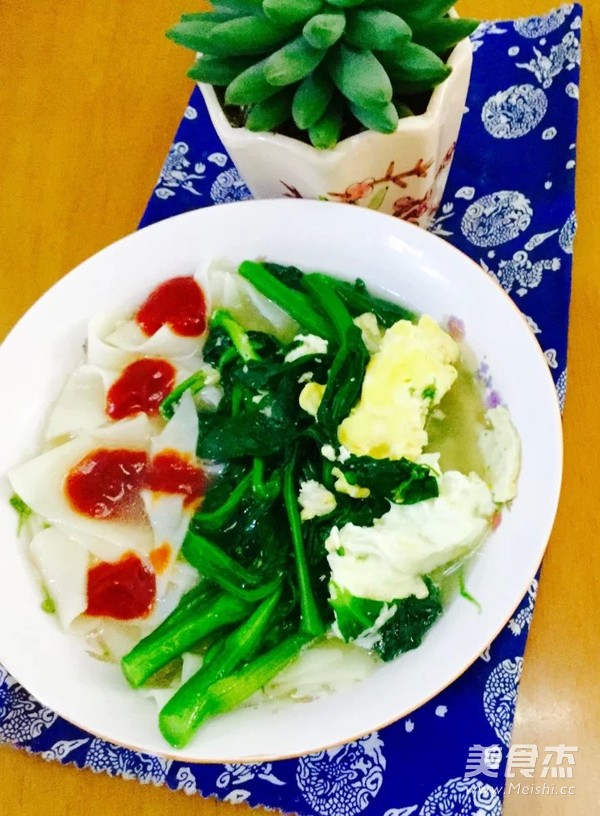 3.汤锅内放适量清水,加入油盐,放入菜心