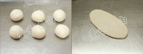 3、立即将面团分割成55克/个,滚圆后松弛15分钟(图1)。