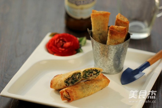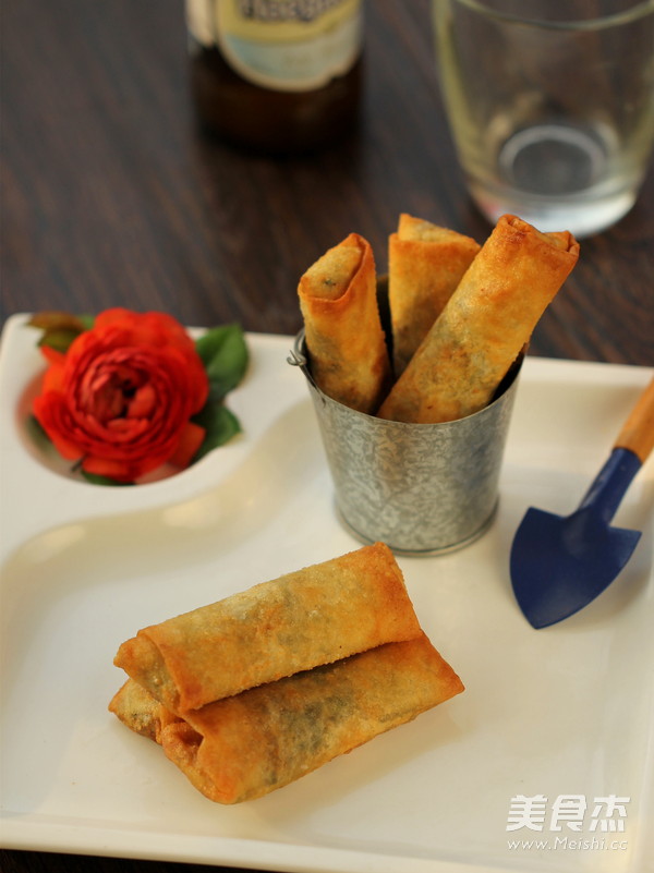 9. 锅中放适量的油,待油七成热时, 放入春卷, 中小火炸;