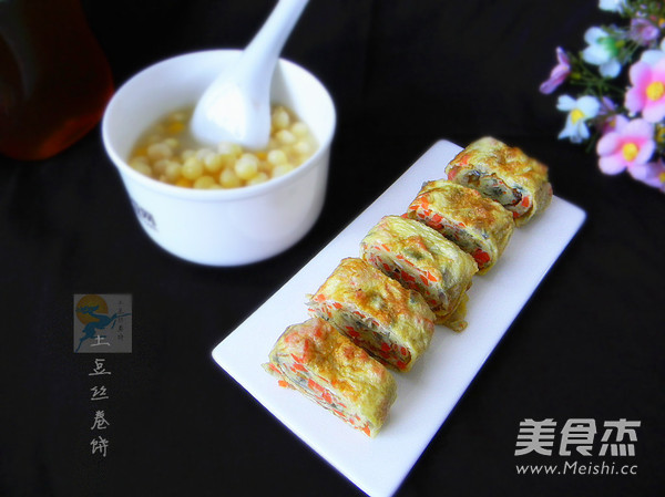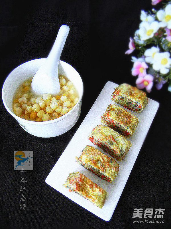 我把自己做的这个鸡蛋卷没有叫厚蛋烧,叫它胡萝卜蛋卷。让早餐吃得更营养丰富,我在鸡蛋里加了胡萝卜,配上一碗甜玉米粥,真的很美味。