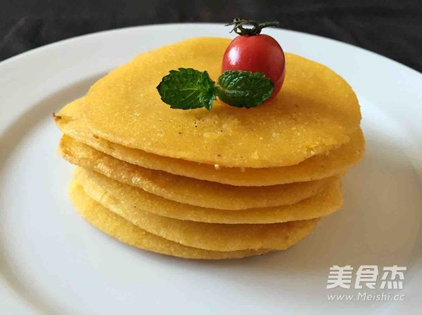 4.小火至两面金黄奶香玉米面饼就做好了(中火也可以,小火煎出来的饼不会有糊的痕迹,并且颜色漂亮,只是慢一点)