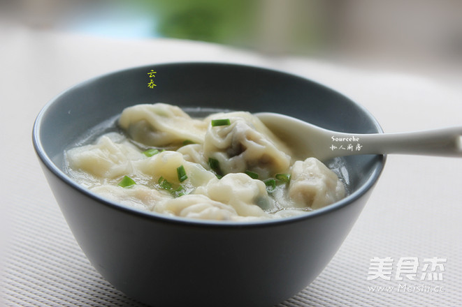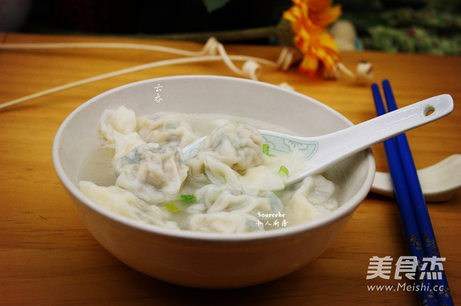13.透明状,云吞浮起,放入葱,即可吃。