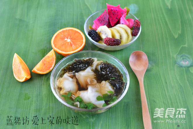 4.碗底小料混合均匀,加入馄饨汤和煮好的馄饨即可食用