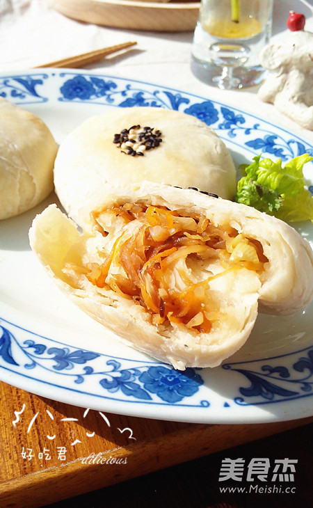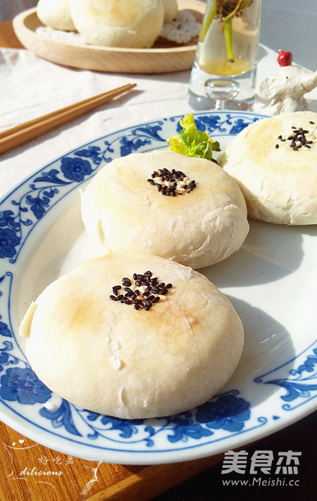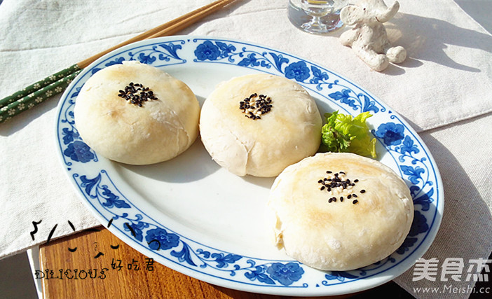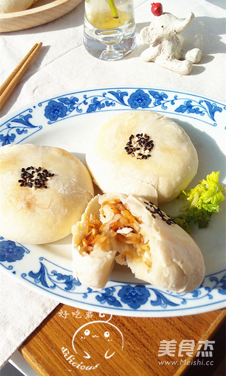 7.小剂子擀开,放入调好的馅料儿。收口包好,表面喷点儿清水,拍点儿芝麻装饰。210度预热,上下火+热风对流200度,25分钟即可