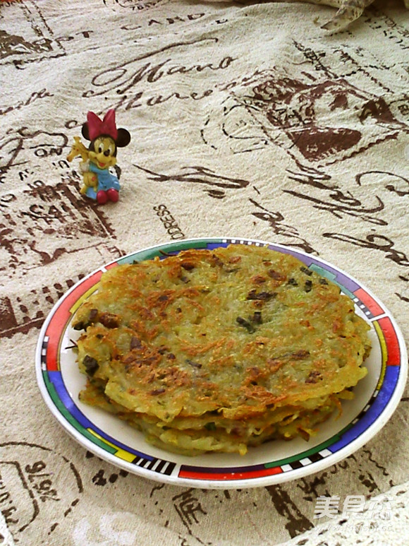 土豆,怎么都好吃。做饼,应该也不会被拒绝吧?锅底刺啦啦地响着,土豆的香味飘散开来。。。