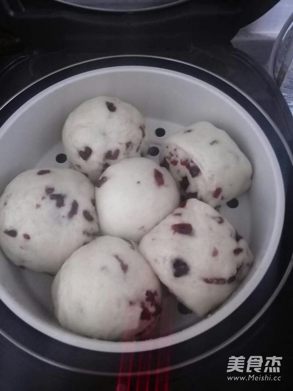 6.面团加入蔓越莓揉匀后平均分成6份,放入少许干面粉揉圆,放入蒸锅,醒发15到20分钟,然后开火蒸熟即可。