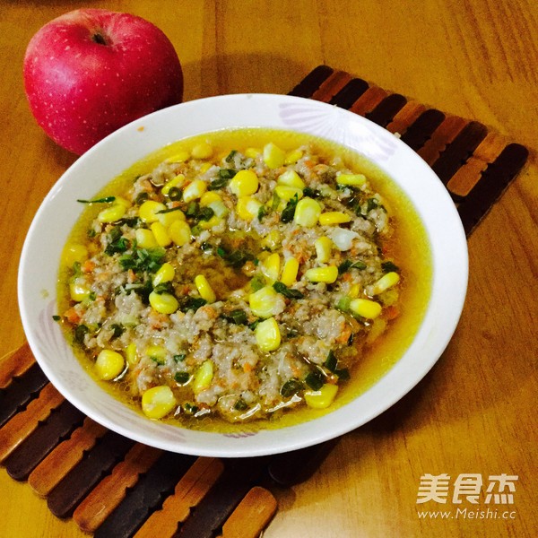 下饭菜 主料 猪肉200克 胡萝卜100克 玉米100克 辅料 油10克 盐5克 蚝油5克 香葱5克 蒸肉饼的做法 1.准备好材料,玉米剥出,葱切葱花 2.胡萝卜切成粒 3.猪肉洗净,沥干水分 4.剁成肉末 5.盛起,加入油盐、蚝油,搅拌均匀 6.加入胡萝卜粒 7.加入玉米粒 8.搅拌均匀 9.加入葱花,搅拌均匀,用碟盛起,待饭滚的时候,放入电饭煲蒸,饭熟时,肉饼就熟了,这步骤忘记拍照了,不过亲一定懂的 10.简简单单的菜就OK了 烹饪技巧 饭滚后再放肉饼蒸,这样子就不会蒸得太老,才好吃