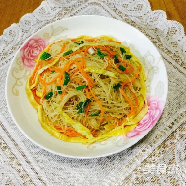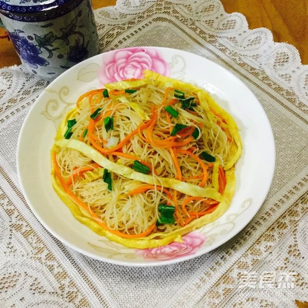 家常早餐 主料 米粉400克 胡萝卜100克 鸡蛋100克 香葱10克 辅料 油20克 盐5克 生抽10克 胡萝卜鸡蛋炒米粉的做法 1.米粉用清水浸软,约需15分钟 2.捞起沥干水分 3.洗净其他材料 4.胡萝卜刨丝,香葱切葱花 5.鸡蛋磕到碗里,加入盐、几滴生抽,搅拌成蛋液 6.起油锅 7.倒入蛋液,摊薄,两面煎好 8.取出对折2次,放在案板上 9.切成丝 10.起油锅 11.放入胡萝卜丝炒熟,盛起 12.起油锅 13.放入米粉 14.加入盐和生抽,炒匀 15.加入胡萝卜丝和鸡蛋丝 16.翻炒均匀 17.加入葱花,拌匀 18.盛出享用 烹饪技巧 米粉一定要浸软,而且要沥干水分