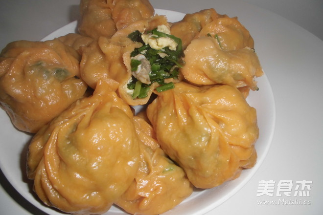 看起来 表皮颜色不太好 是因为用的胡萝卜汁和面 熟了以后 不好看 味道还可以 主料 胡萝卜200克 菠菜300克 韭菜20克 鸡蛋1个 花蛤150克 辅料 姜粉5克 盐5克 五香粉3克 油5克 素馅蒸饺的做法 1.菠菜 剁陷 2.韭菜切好 3.花蛤去皮取肉 剁碎 4.切好的菜放一起 加入熟鸡蛋 5.少许姜粉 五香粉 盐 油 6.搅拌均匀 7.胡萝卜切丁 8.料理机 榨汁 9.和面 10.包馅 11.包好上锅蒸 12.中火15分钟 13.出锅 烹饪技巧 无