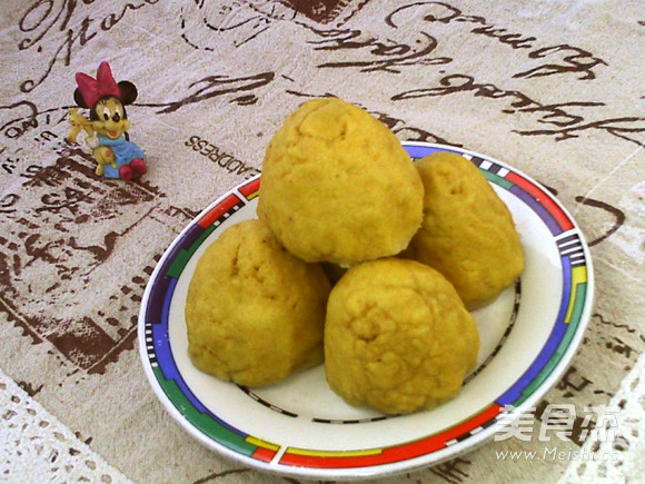 1.用料:玉米面80克,黄豆面40克,沸水72克,小苏打1克