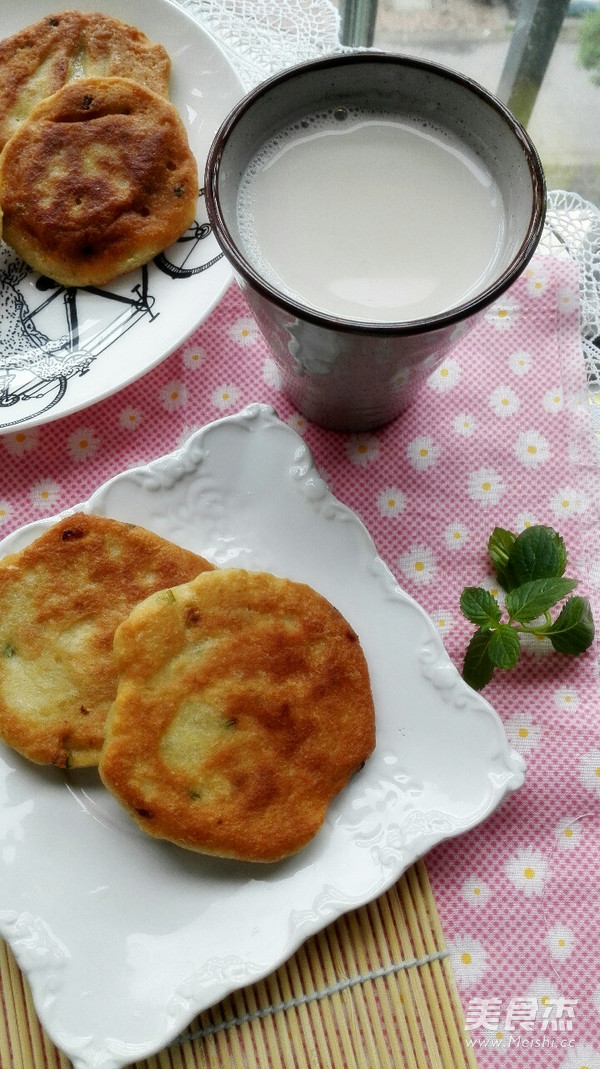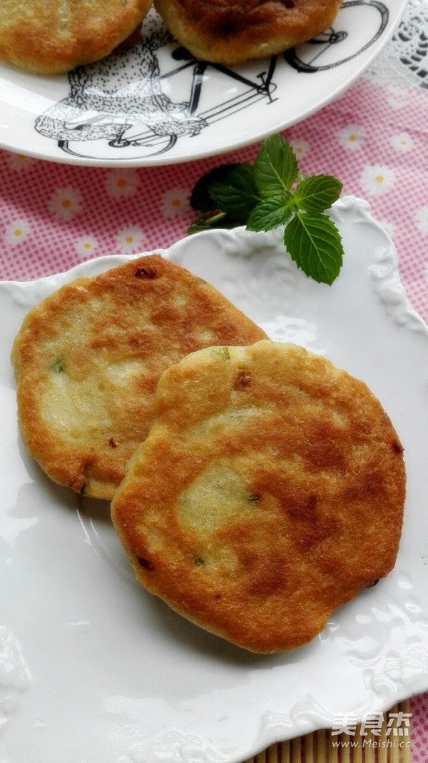 5.锅内放油,大火烧热后转小火 将饼糊捏一团在手心拍扁后放入油锅中(双手提前沾水就不会粘手啦)