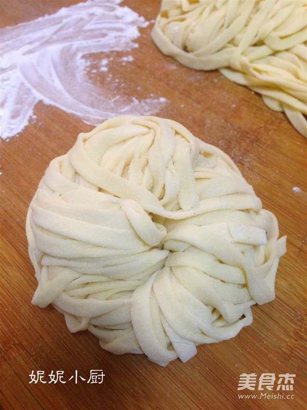 12.让面片通过滚轴,你就可以得到想要的面条了