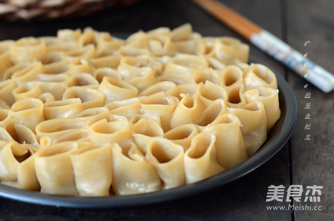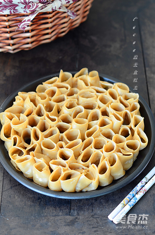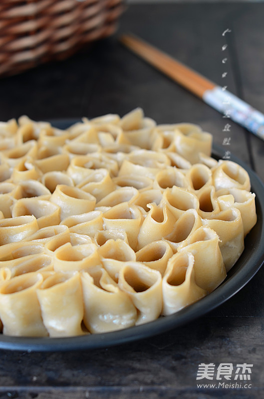 6.把卷好的栲栳栳立着放在盘子上。