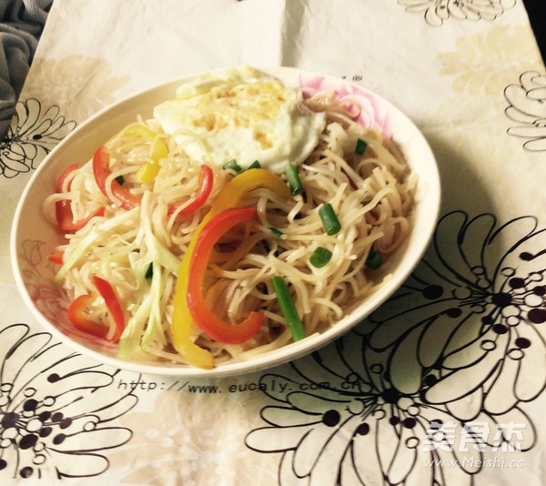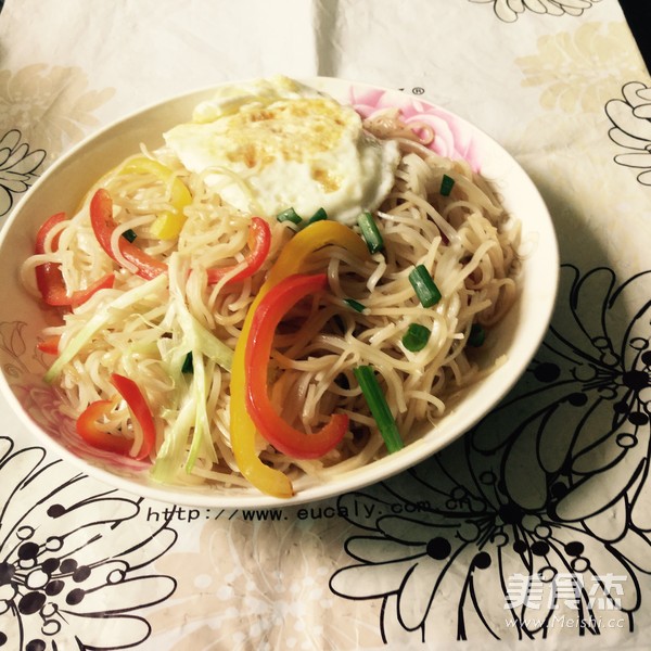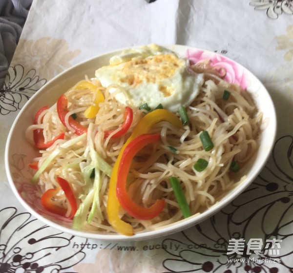 自己一个人在家,不知道吃啥好,打开冰箱,还有诱人的圆椒,就地取材做了这个炒粉,想不到味道还不错呢