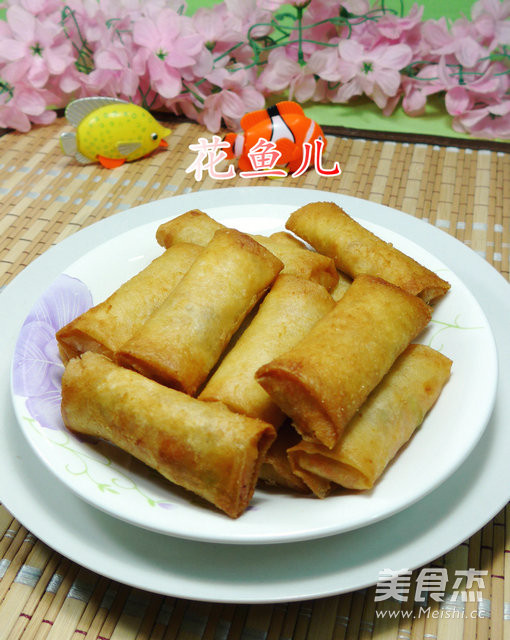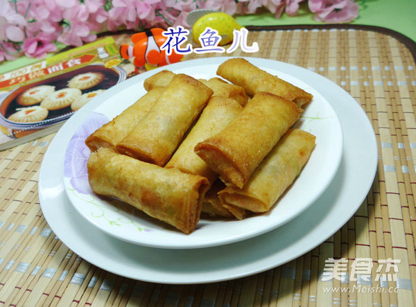 花鱼儿家的米西米西。。。 主料 春卷皮100克 肉末120克 胡萝卜105克 辅料 香葱5克 料酒1汤勺 盐0.5勺 味精0.5勺 油440克 胡萝卜肉末馅春卷的做法 1.食材:春卷皮、肉末、胡萝卜(已清洗去皮)、香葱 2.将胡萝卜用擦菜板擦碎在大盘中 3.随后,合入肉末,搁入香葱 4.接着,加1汤勺料酒 5.加0.5勺盐 6.加0.5勺味精 7.调味拌匀成馅料 8.然后,取春卷皮放在案板上搁入馅料 9.包好 10.全部包好的春卷 11.最后,在锅中加入440毫升油烧热,将包好的春卷下入油锅中,用中小火炸成金黄色,即成 12.出锅装盘,就可以米西米西了
