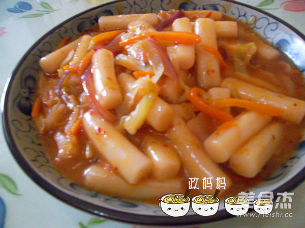身边有很多朝鲜族朋友,他们都喜欢吃炒年糕,跟朋友学习了做法,味道很不错。 主料 年糕1包 包菜100克 胡萝卜50克 洋葱100克 辅料 辣酱2勺 油2勺 盐适量 辣炒年糕的做法 1.年糕切段备用 2.包菜洗净切丝 3.胡萝卜去皮洗净切丝 4.洋葱洗净切丝 5.辣酱加点水调开加入适量盐调匀 6.锅里油热加入胡萝卜翻炒几下 7.加入包菜洋葱翻炒 8.加入年糕条翻炒 9.加入辣酱翻炒均匀 10.加入适量水煮至汤汁浓稠即可 烹饪技巧 年糕最好买新作的比较软的年糕条做出来比较好吃。辣酱最好用韩国辣酱。