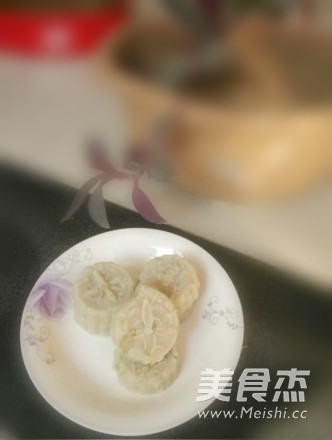 3.在蒸熟的山芋里加入点盐,用勺子压,压成山芋泥