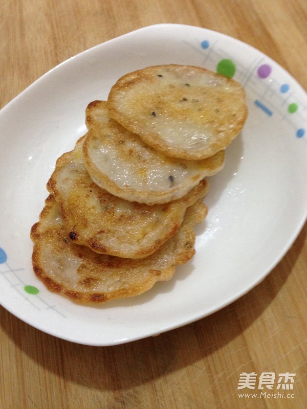 糯糯的、脆脆的、甜甜的... 主料 香蕉1根 糯米粉150克 芝麻20克 辅料 白糖3勺 玉米油5勺 牛奶250毫升 奶香香蕉糯米饼的做法 1.香蕉去皮,切薄片 2.准备大碗,倒入糯米粉 3.加牛奶和适量清水搅拌均匀,呈较稀的糊糊状 4.撒入芝麻,搅拌均匀 5.放入香蕉片 6.放入白糖调味,搅拌均匀 7.准备平底锅,控干水分,倒油,烧至约7成热 8.舀入一勺糯米糊糊,小火煎成型 9.翻面,继续慢煎,至两面金黄,即可 烹饪技巧 1、挺耗油的; 2、刚出锅的饼是脆脆的,冷了就影响口感