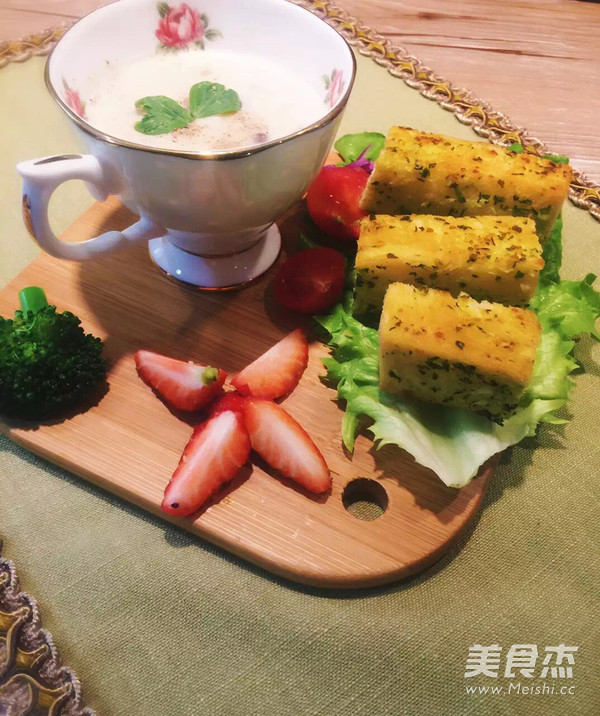 香喷喷的蒜香吐司,吃上一口,浓香四溢,配上一盅稠稠的牛奶蘑菇浓汤,美美的一天从早晨开始,让我们一起动起来吧!!